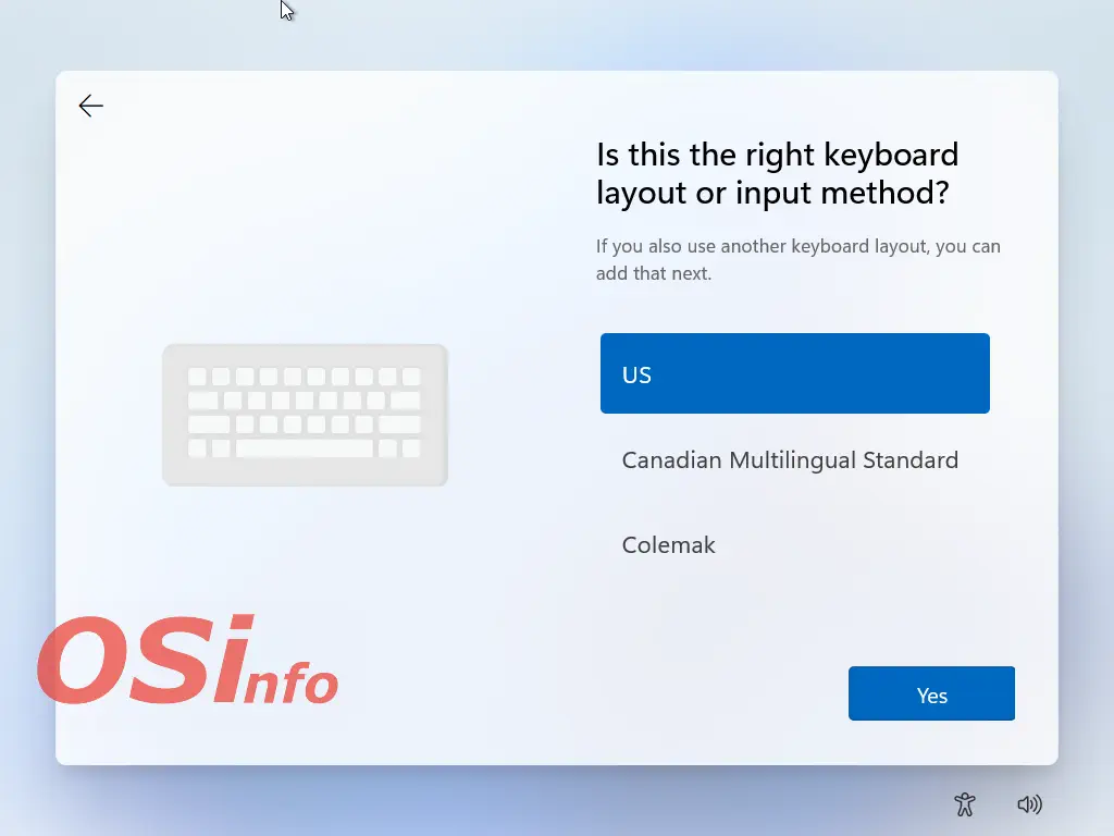 In the next window, we again have a choice of keyboard layout. Select the correct one and click “Yes.”